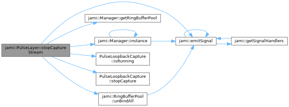 References jami::emitSignal(), jami::Manager::getRingBufferPool(), jami::Manager::instance(), PulseLoopbackCapture::isRunning(), JAMI_DEBUG, JAMI_WARNING, PulseLoopbackCapture::stopCapture(), and jami::RingBufferPool::unBindAll().